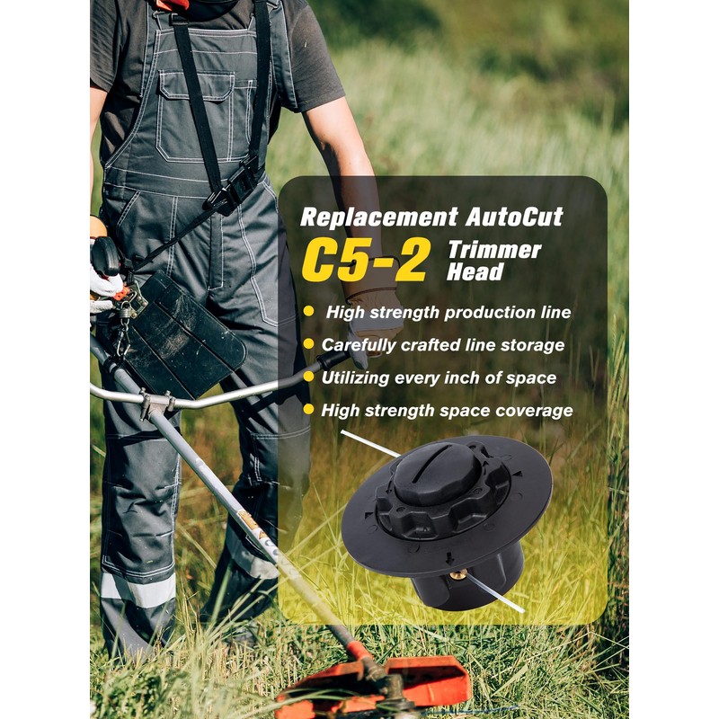 - C5-2 trimmer head double line for trimming and mowing, nylon line is fed automatically by beat action. C5-2 weed eater head suitable for lawn trimming, between shrubs along edges, around trees, walls and fences.