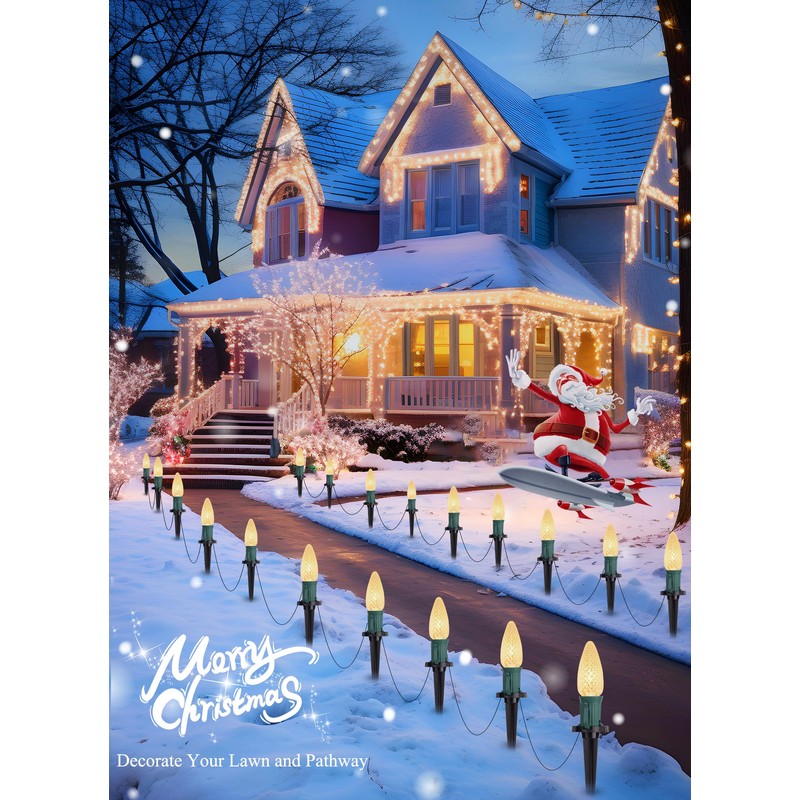 - Applicable Occasion: Amazing LED C9 string lights with stakes, perfect for Christmas pathway, driveway, walkway, garden ground, and courtyard, separate and line up your personal area with bright gorgeous light. Create your Christmas and holidays atmosphere