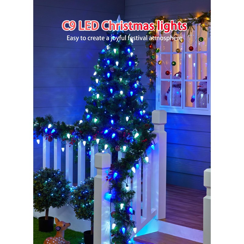 • Wide Range of Uses for Christmas Decorations: These C9 Christmas tree lights serve as perfect decorations and unique gifts for Christmas, birthdays, homes, weddings, parties, and various celebrations. Their bright and beautiful illumination enhances Christmas trees, holly wreaths, apartment railings, tree trunks, yards, porches, patios, and more