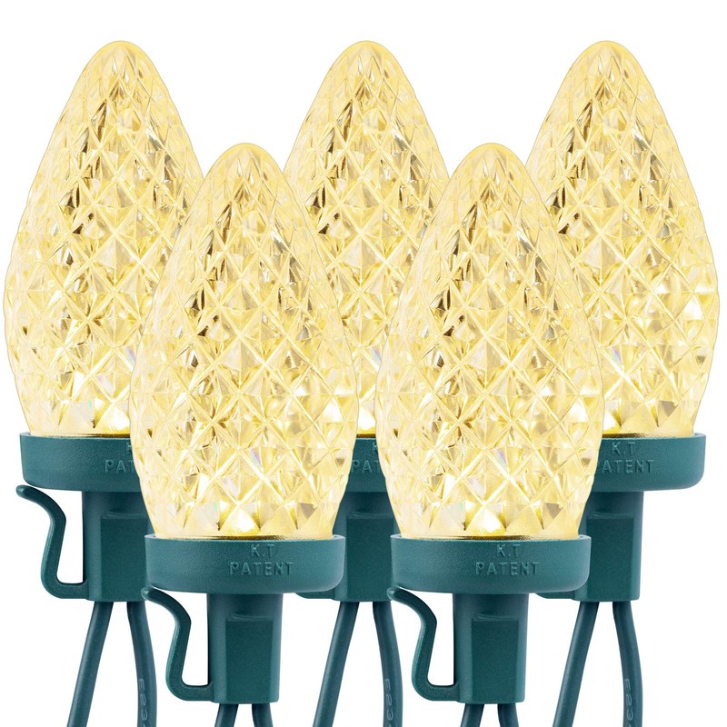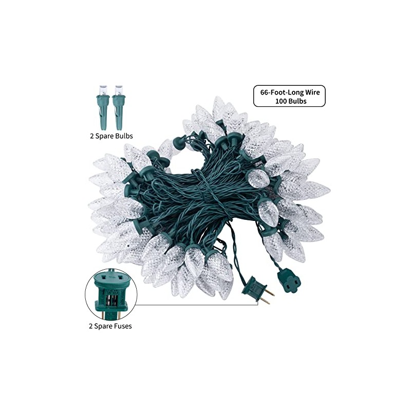 C9 LED Christmas String Lights, 66ft 100 LED Waterproof Strawberry String Lights, Plug-in Extendable Green Wire Lights String for Outdoor Indoor Outside Patio Wedding Party Decoration, Warm White