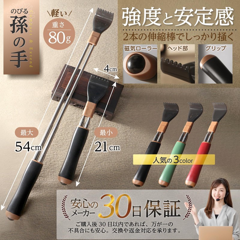 - (Grandchildren's hands reach itchy areas) The rounded tip processing and solid PP material satisfies the scraping process. The length can be adjusted with a telescopic bar to reach itchy areas