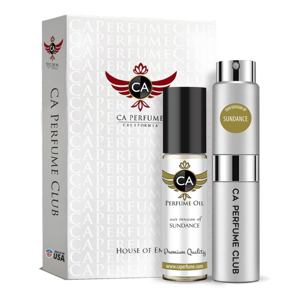 CA Perfume Duo Impression of Sundance Women & Men Sprayer + Body Oil Roll-On Bottles 0.27 Fl Oz+0.33 Fl Oz