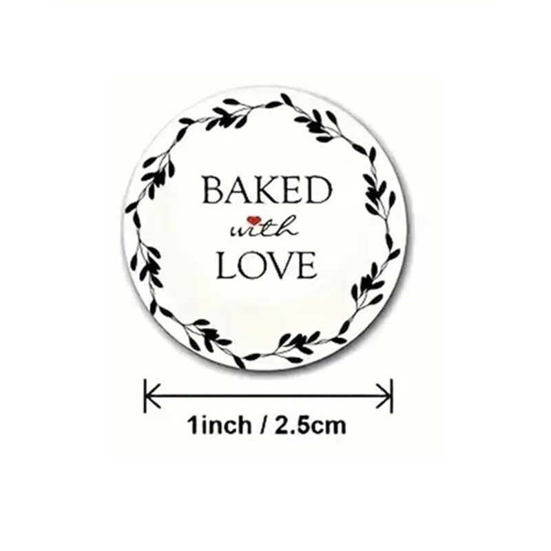 CAA Trading™ 100 x Baked with Love Stickers Baking Cakes Buns Customer Appreciation (100 Stickers)