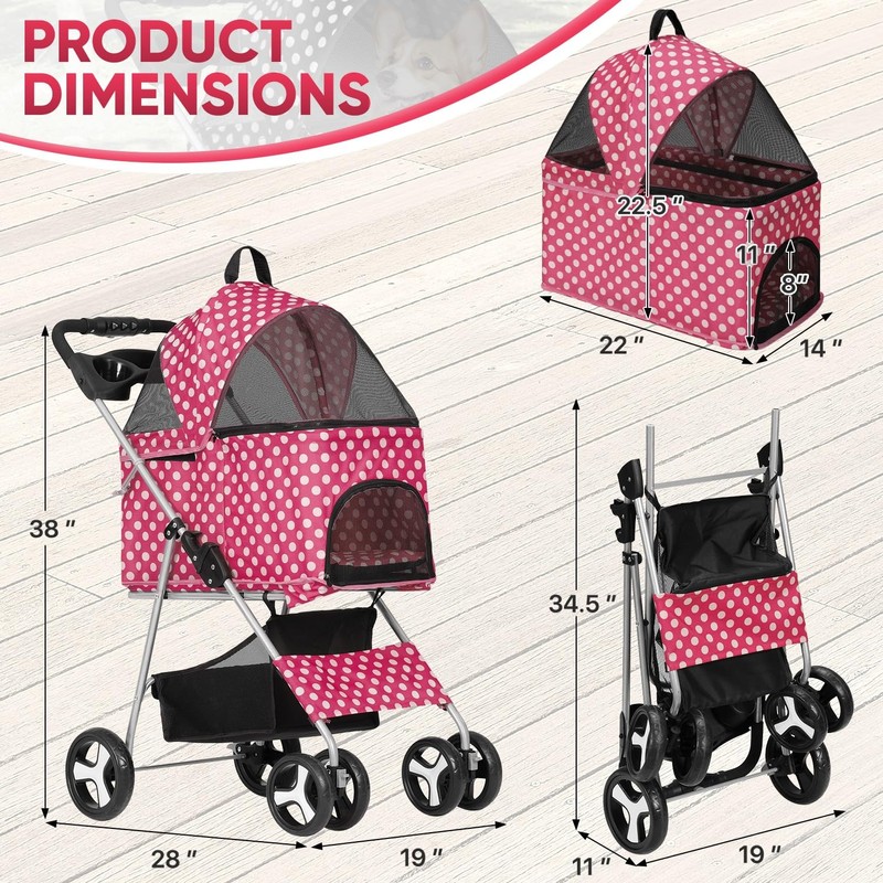 - Abundant Storage Space - Our pet stroller is thoughtfully designed with multiple storage solutions for your convenience. It features a handy cup holder tray, a secure back pocket, and a spacious bottom storage area, ensuring you have plenty of room for all your pet's essentials and more.
