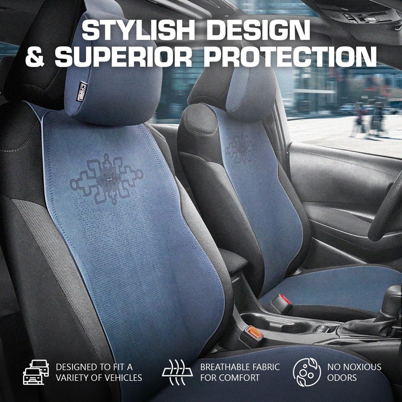 CAAP DRIVEN Protex Plus Series Front Row Set Seat Covers Microsuede Upholstery Universal for Cars Trucks SUV, Navy Blue, CA-SC-PRO-Plus-F-NB