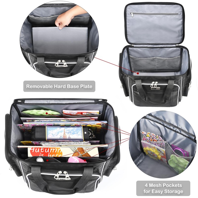 - ★ROLLING SCRAPBOOK TOTE BAG WITH WHEELS : Use heavy duty nylon material and provide sponge filling in important places to provide better protection for scrapbooks and tool supplies.The bottom of rolling teacher bag uses a removable hard base for sturdiness and extra protection.