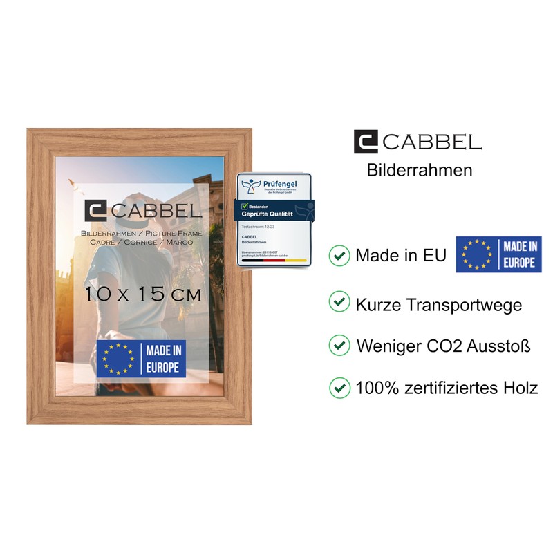 CABBEL Picture Frame 10 x 15 cm, Oak, Sturdy MDF Wood Frame, Shatterproof Plexiglass, for Hanging and Setting Up, Ideal for Photos/Pictures/Collages