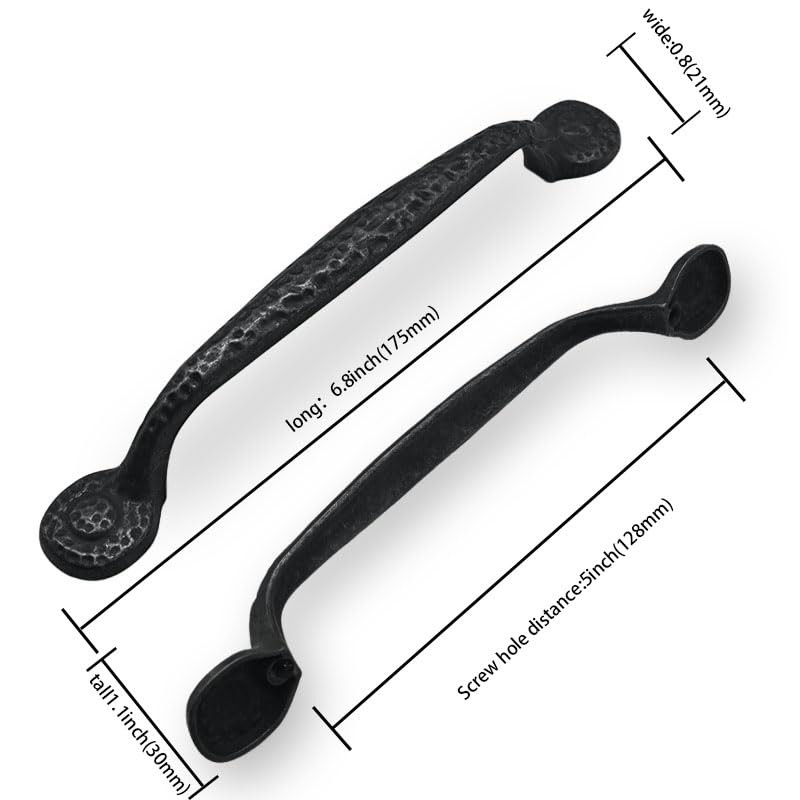 CABDM 2 Pack Rustic Black Hammered Cabinet Pulls - Vintage Kitchen Cabinet Hardware, 5 Inch (128mm) Hole Center