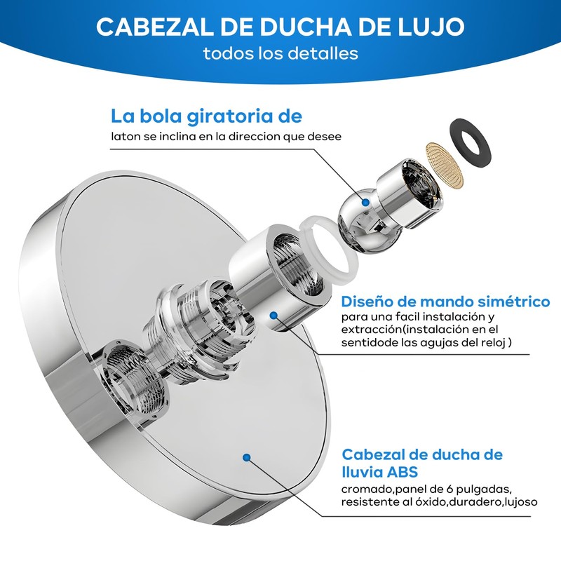 - 【High Pressure Showerhead Shower Head】: El cabezal de la ducha mide 6 pulgadas. Combina tecnología ultrafina para aumentar la presión del agua con un potente chorro que distribuye el agua por todo el cuerpo. La excelente descarga de agua proporciona un masaje dinámico completo para su piel.
