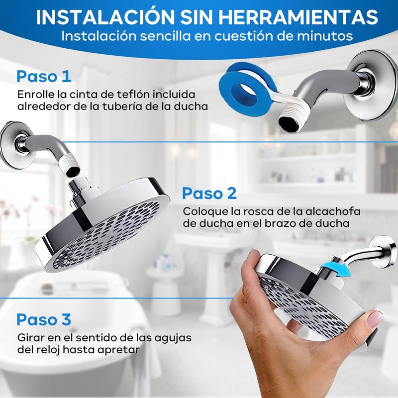 - 【Fácil instalación】: no requiere herramientas, rosca G1/2, se adapta a todos los brazos de ducha de tamaño estándar. Se instala fácilmente en un brazo de ducha montado en la pared o en el techo en sólo unos minutos y sin herramientas. Se suministra cinta de teflón gratuita para ayudarle a ajustar el producto en cuanto lo reciba.