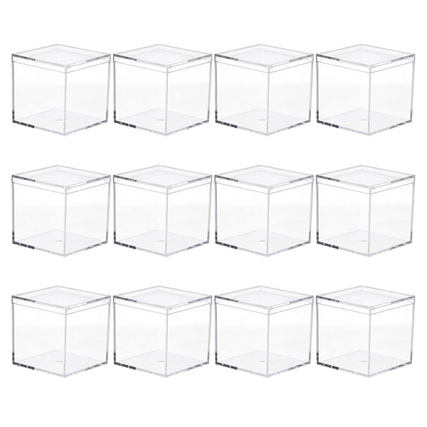 Cabilock 12Pcs Mini Acrylic Storage Box Square Storage Bins Beads Storage Box Desk Drawer Organizer for Small Items Jewelry Earring Note Pads Paperclips 5. 5CM