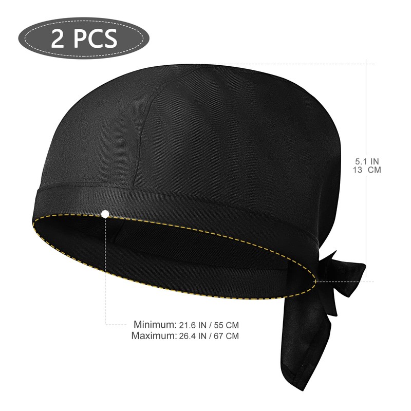 2pcs Black Tie Back Working Caps Adjustable Hats Chef Head Cover Net Barber Chef Working Cap