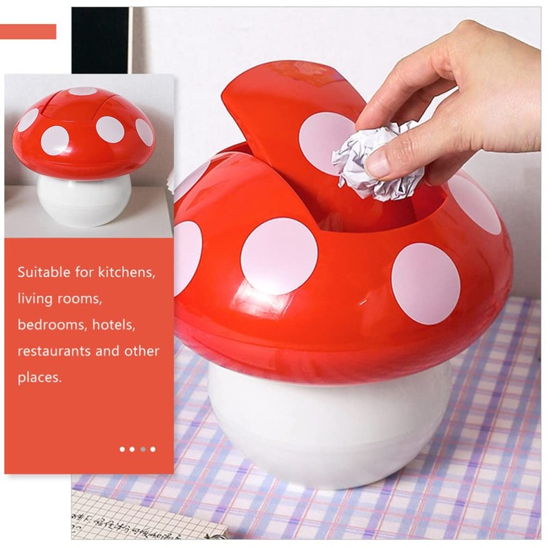 The Adorable Mushroom-Shaped Desktop Trash can, Perfect for Adding a Touch of Whimsy to Any Space. Whether You’Re in the Kitchen, Bedroom, or Office, This Mini Garbage can Is Designed to Seamlessly Blend Into Your Environment While Providing a Functional Solution for Waste Disposal. with a Lid to Keep Your Trash Hidden Away, It Helps Maintain a Tidy Appearance on Your Desk or Countertop.