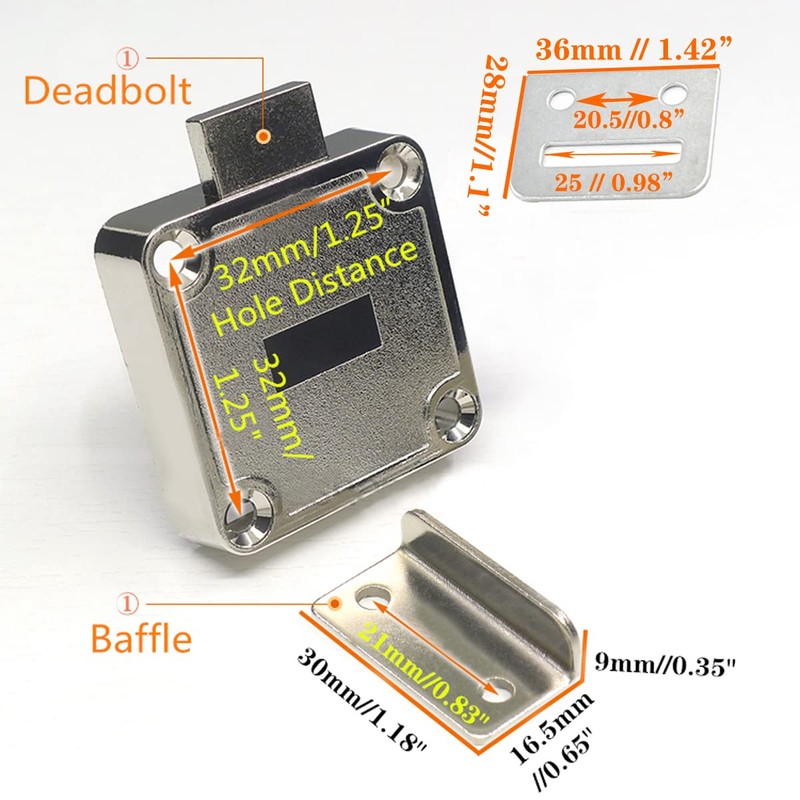 - 4: Easy Installation, Complete Accessories, Screws, Baffles, Bolts Complete. Meet Your Different Cabinet Uses. Special Note: The Key to Each Lock is The same. Each Lock Comes With Two Interchangeable Keys. One Key Can Open Multiple Locks at the Same Time. Solved, Because You Have Too Many Keys, And Brought The Trouble.