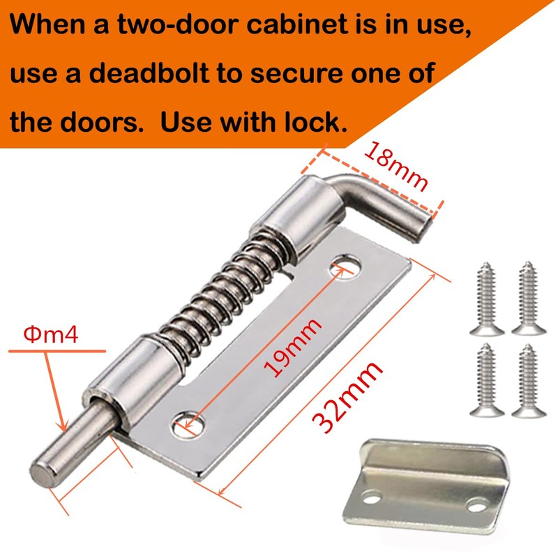 - 1: Multi-Purpose Cabinet Lock, Single Soor or Souble Soor Cabinet Can be Used, The Double door Cabinet Door is Used With The Door Bolt and Stop piece, Flexible Combination and Collocation, Can be Used on a Variety of Cabinets. , Suitable for 27mm to 32mm (1.06 inch--1.25 inch)Door panels, Drilling Diameter Size (18mm / /0.7 in).