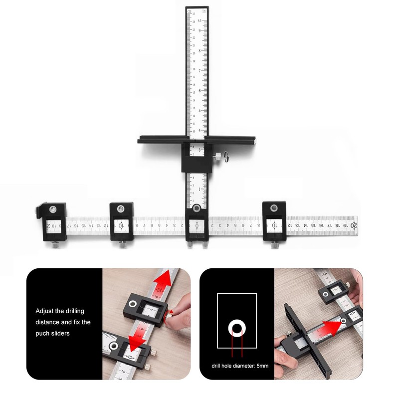 Cabinet Hardware Jig, Adjustable Punch Locator Drill Guide,Wood Drilling Dowelling Guide for Installation of Handles Knobs on Doors and Drawer, Cabinet Template Tool for Handles and Pulls