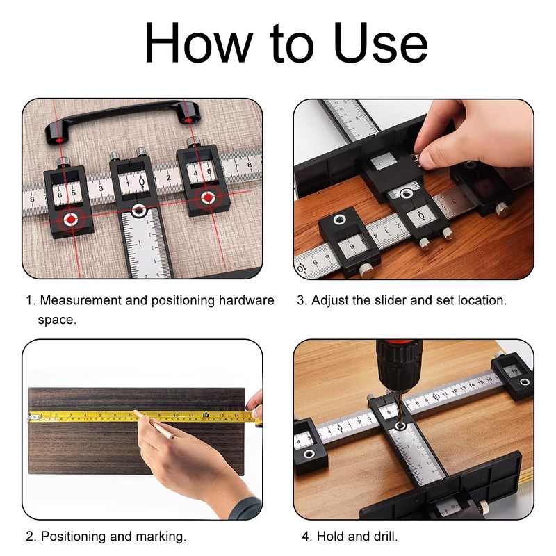 - 【Time Saver Quick Drilling】Cabinet Hardware Jig makes set up simple and quick. The quick-release Drill Guide Block makes set up simple,and easy to setup for any length,set it up once and use it repeatedly -This template jig lets you measure out perfect hole positions for cabinet handles, pulls, and knobs.