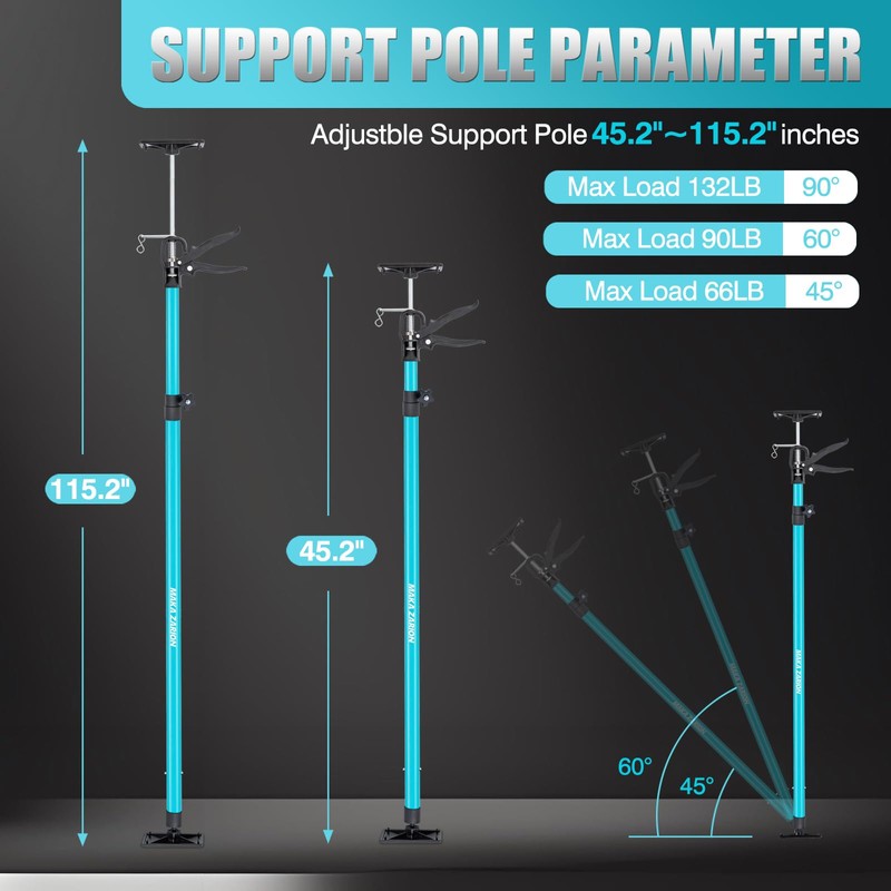 - HOME RENOVATION COMPANION: The MAKA ZARION cabinet jacks for installing cabinets offers adjustable support pole from 45.2 to 115.2 inches, making it ideal for various renovation scenarios. It's the perfect companion Jack for your home renovations, especially suited for cabinet jacks, undermount sink support brackets, pontoon cover support poles, woodwork, staircase construction jack, shelving, dust barrier poles, and drywall lift & zip wall installations.