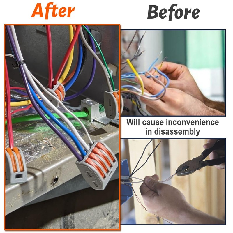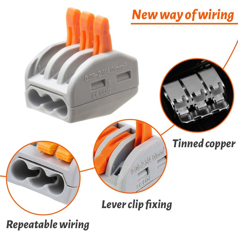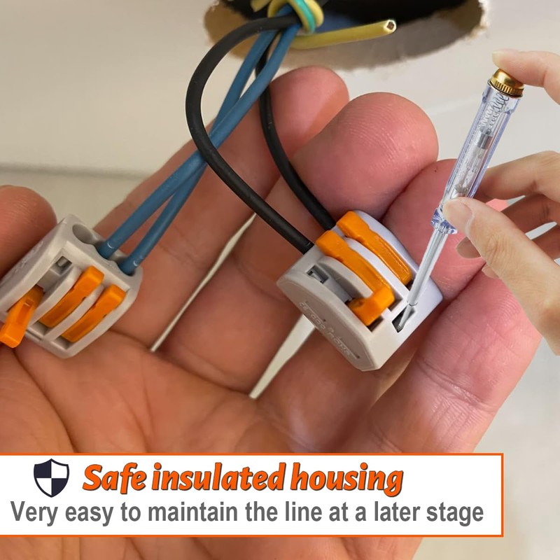 • Built-in lever design: you will receive 20 electric cable clamps, the cable connection is achieved by integrated lever, which makes splicing cables easier, no need to connect cables by screws, soldering and so on.