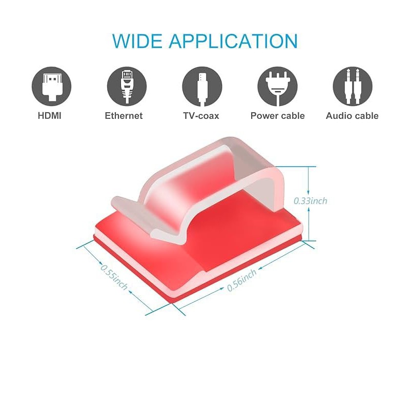 - Our adhesive cable clips package comes with 20 pcs clear cable clips.