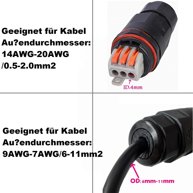 - Comprehensive application: suitable for 2 pin and 3 pin connections. The connectors are made of high-strength ABS and metal and are designed for home, garden or agricultural applications. Suitable for outdoor lighting, quick connection and external wiring.