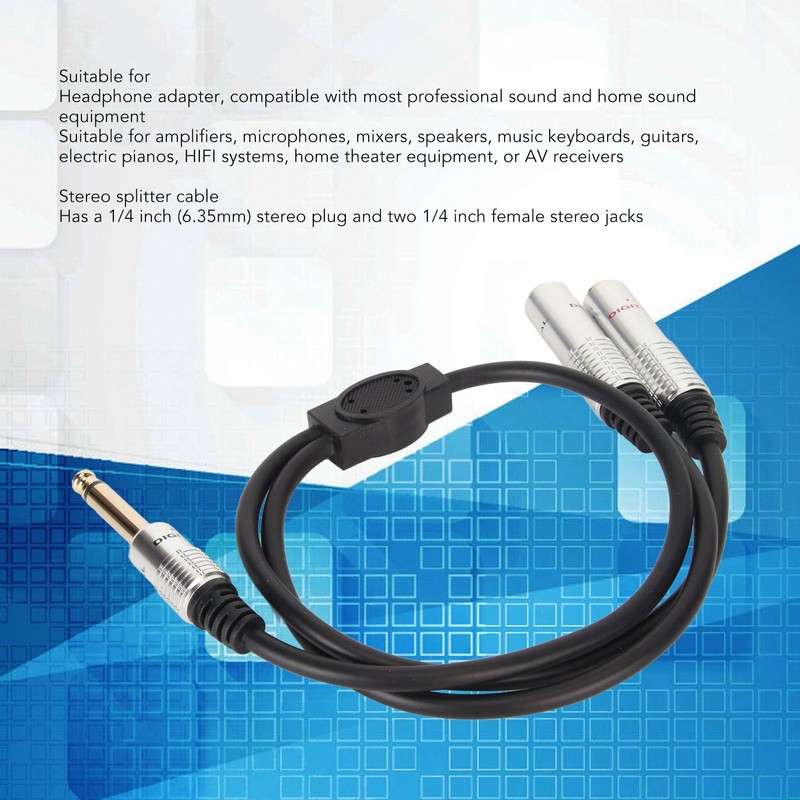 Cable Divisor en Y de 6,35 Mm, Estéreo de 19,7 Pulgadas, Conector Macho Mono a Jack Hembra Doble, Chapado en Oro, 1 Entrada y 2 Salidas