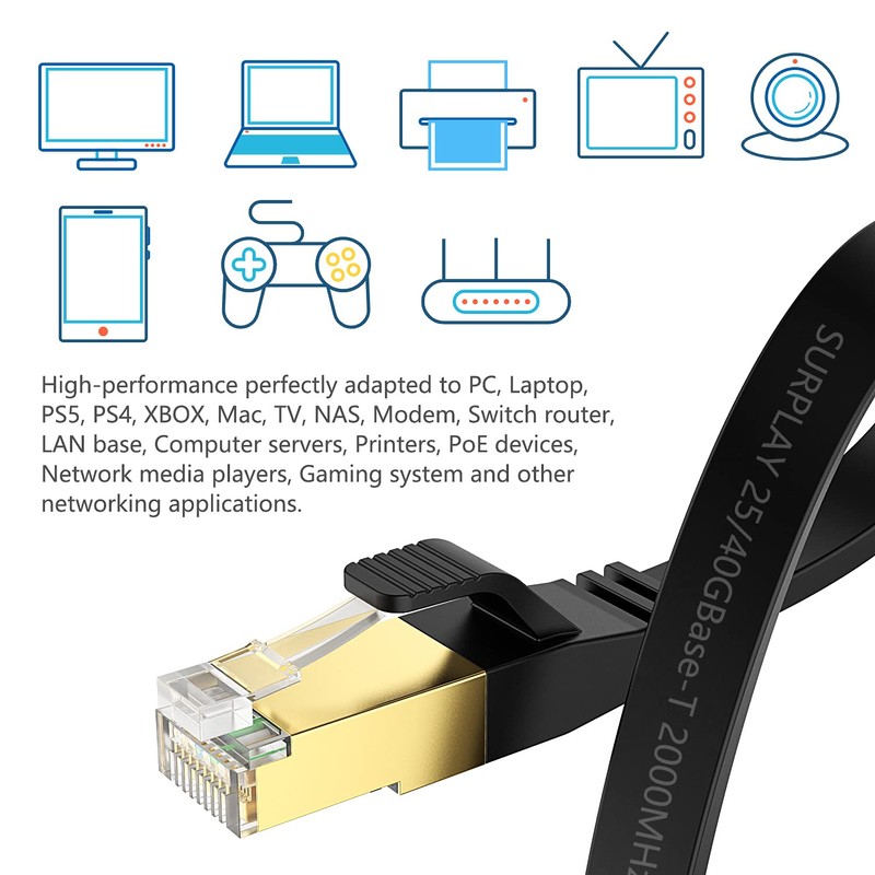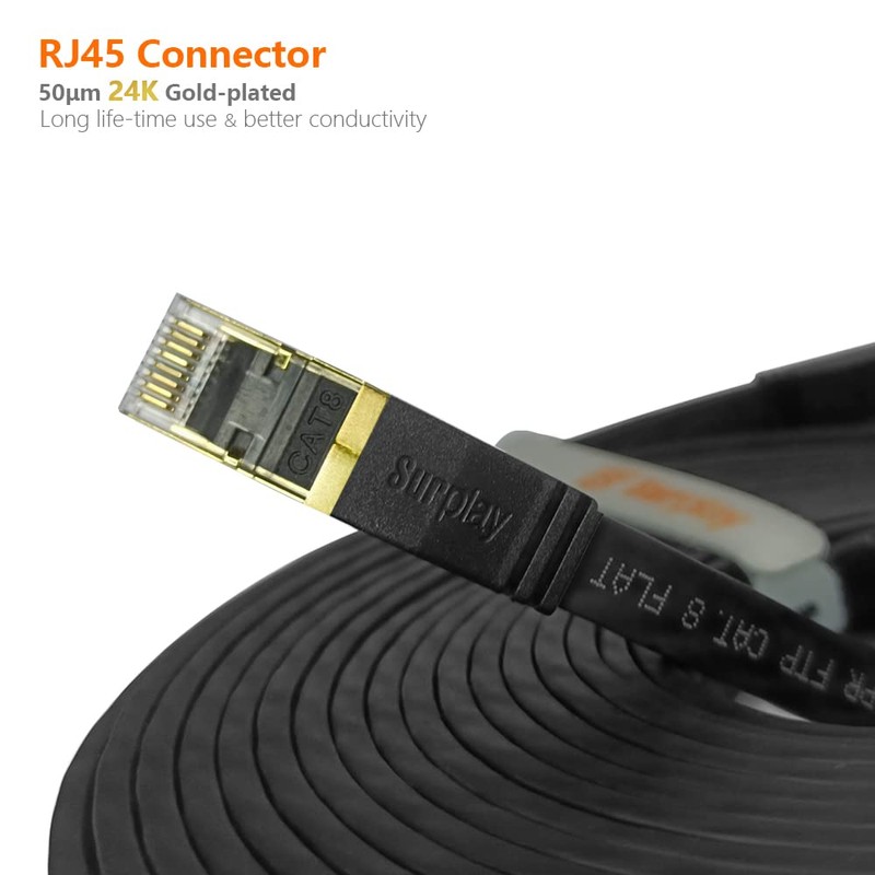 - 馃К[Alta Velocidad] SURPLAY plana delgada Cat8 blindado con GND Ethernet Patch Cable est谩ndar proporciona un alto rendimiento de hasta 2000MHz y la velocidad m谩xima de 40GBase-T. Es compatible con Cat5,Cat5e,Cat6,cat6A y Cat7 cables,es con el rendimiento de transmisi贸n de ultra hiper velocidad que Cat5,Cat5e,Cat6,Cat6A y Cat7 cables ethernet,y adecuado para la empresa,oficina y hogar personal Smart Home Systems perfectamente,como Siri,Alexa,Google Home.Usted obtendr谩 la gran experiencia de sin parar y no ralentizar.