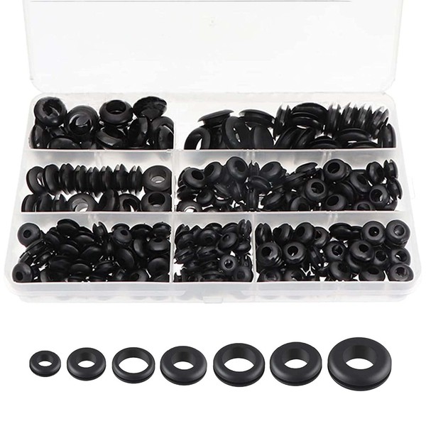 Cable Grommets, Rubber Grommets, Set of 260, Grommets, Grommet Set, Double Sided Protection, Wire Protection, Grommet Set, Rubber Bushing, 7 Different Sizes, Cable Protection