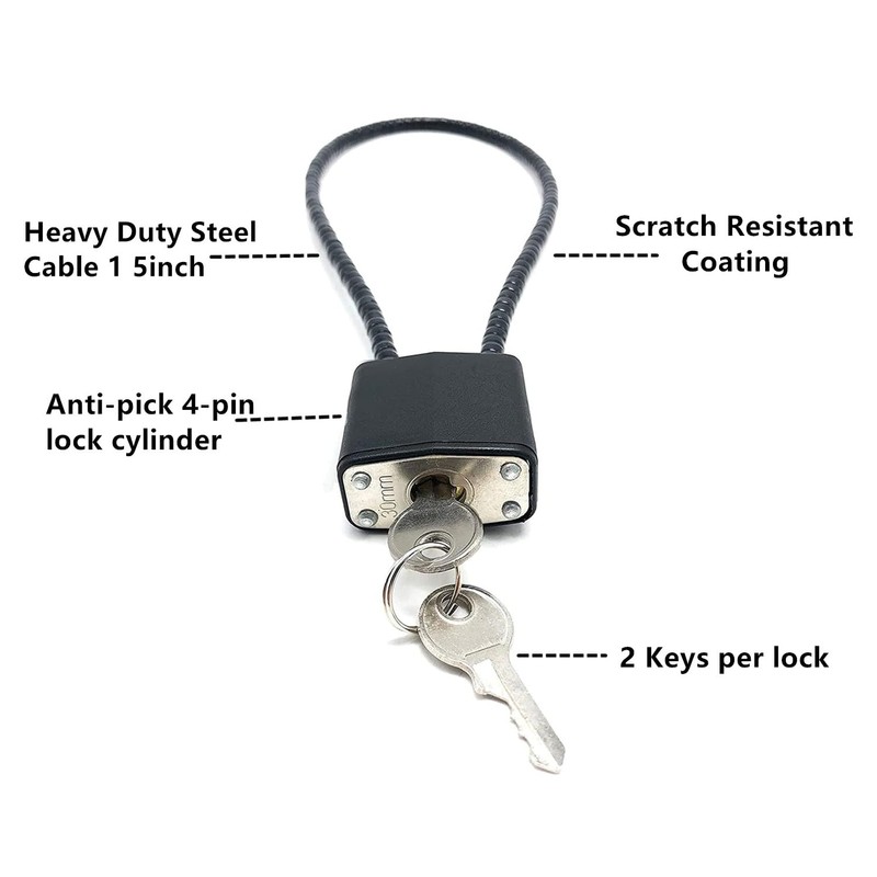 • 【Widely Use In Other Ways】 Cable locks with keys are widely use for gun case, cabinet, gym locker, trash cans and so on. Actually, you can also use it as a motorcycle helmet lock, it will definitely discourage the casual bad guy from swiping your gear.