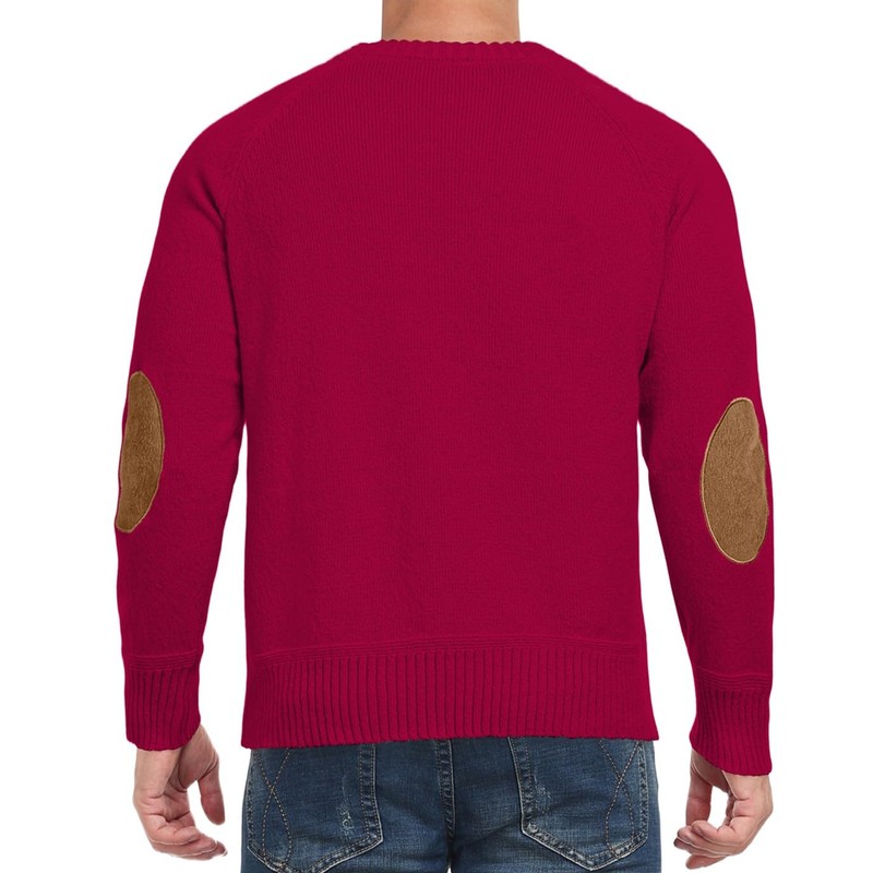 Cable Knit Sweater Men,Long Sleeve Casual Fishmen Sweater, Fit Pullover Sweater with Elbow Patches Red-S