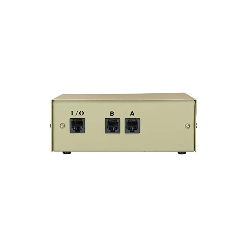 This RJ45 manual switch box allows you to switch between two RJ45 (network/phone) devices on one jack. Requiring no power supply, this switch box is ideal to sit on a user’s desktop and allow him/her to manually switch between active connections.