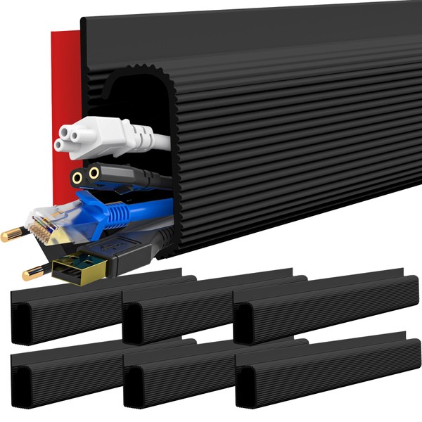 Cable Management Under Desk, 15.7 in Under Desk Cord Management Cable Raceways, 6Pcs Self-Adhesive J Channel Wire Tubing, Hide Wire Organizer for Home & Office, Kid & Pet Trip Prevention (Black)