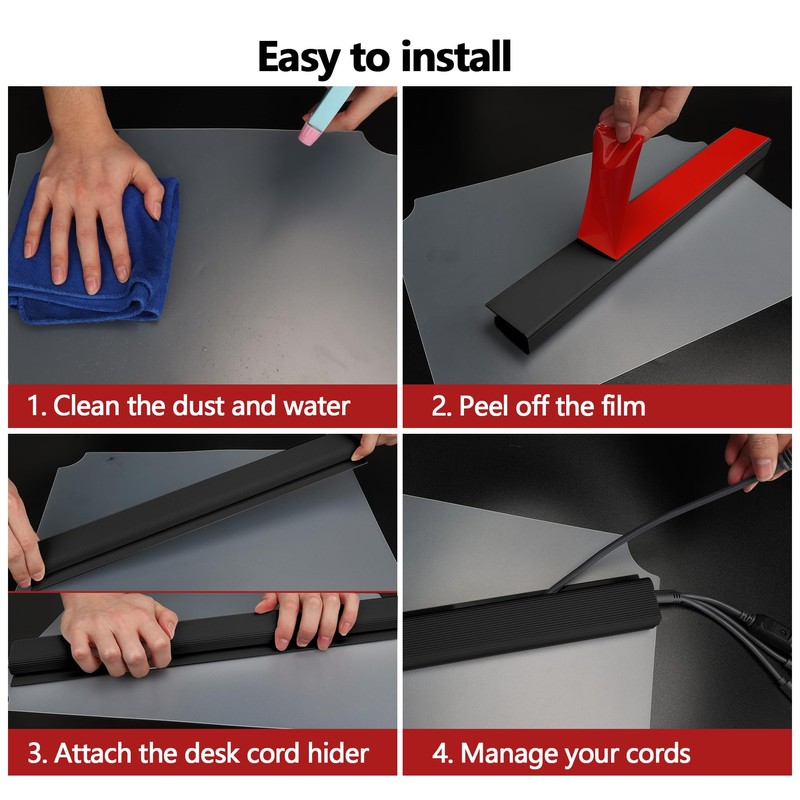 - 【No-Punching Design】Cable management under desk features a no-punching design, which eliminates the need to punch holes in the desktop and avoids damage to the desktop. Cable hider design not only protects the surface of the furniture, but also simplifies the installation process, making it easy to complete the cabling management.