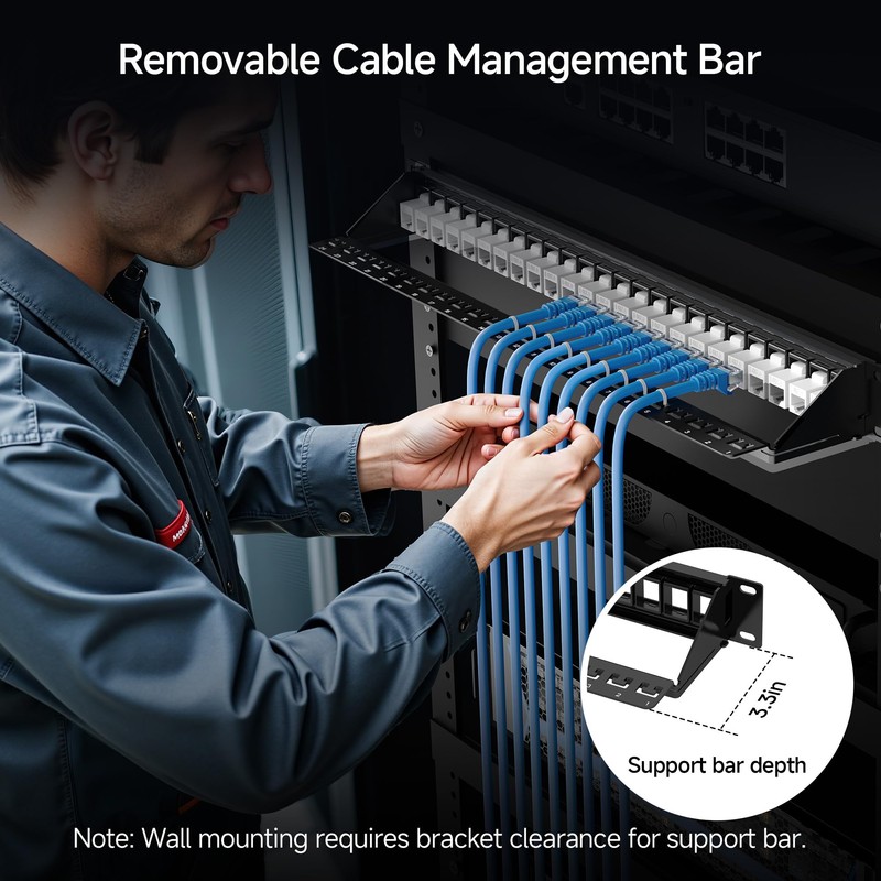 Cable Matters Rackmount or Wall Mount 1U 24 Port Keystone Patch Panel with Cable Management and Support Bar, 19-inch Blank Patch Panel for Keystone Jacks