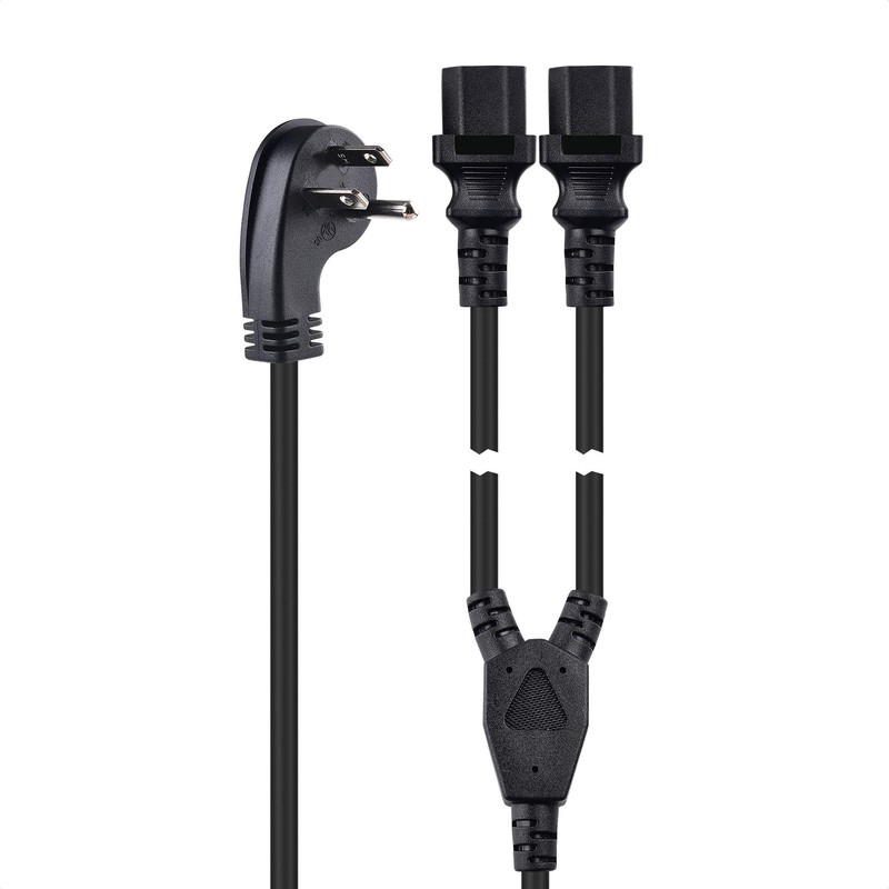 • Power cable splitter connects popular types of electronic equipment such as a desktop computer, computer server with dual power supplies, LED monitor, powered speaker, laser printer and more with a C13 to NEMA 5-15P Power supply cord