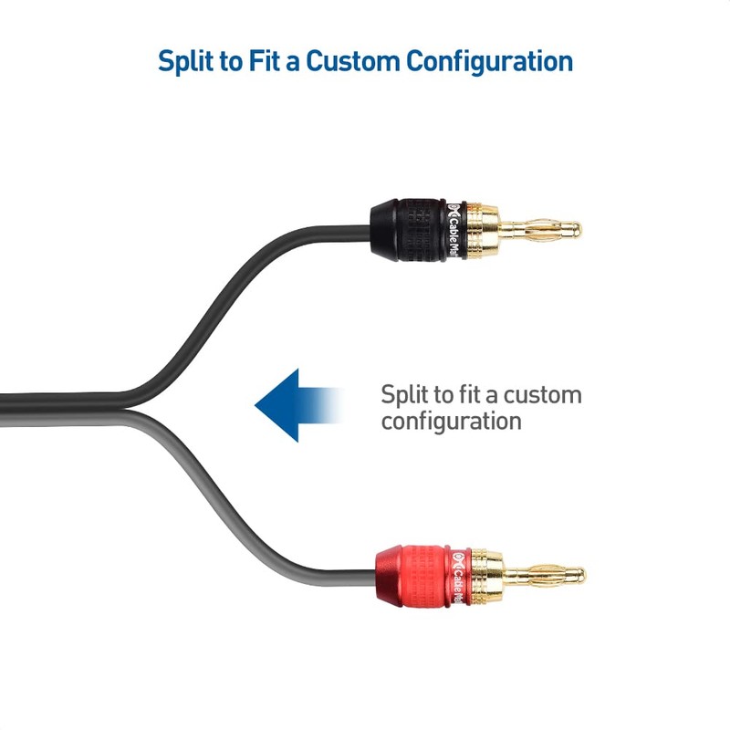 - Split design of the A/V banana cable provides flexibility for connecting to multi-channel systems for flawless performance; Connect to the positive and negative banana terminals of A/V systems and speakers