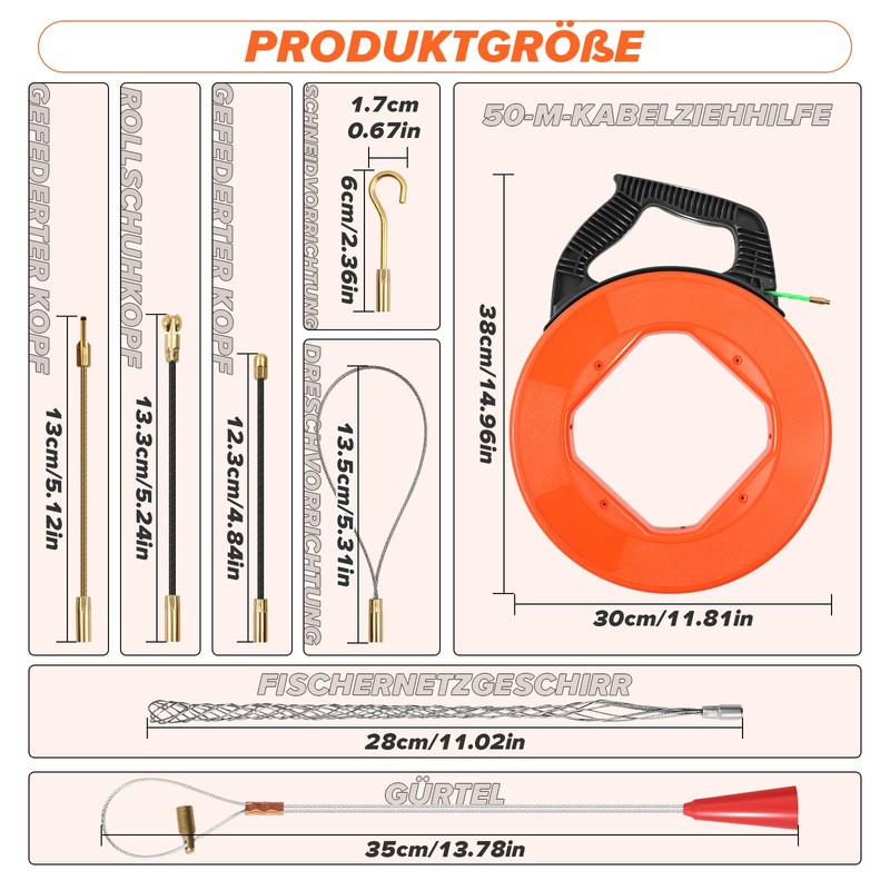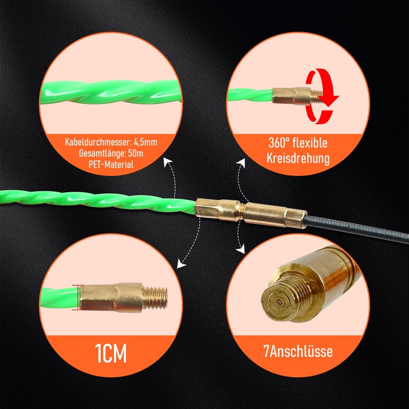 Cable Retractable Tape 50 Metres 4.5 mm with 7 Guide Springs Fibreglass Cable Reel Puller Puller Fibreglass Cable Puller Cable Tool Electrician Tools