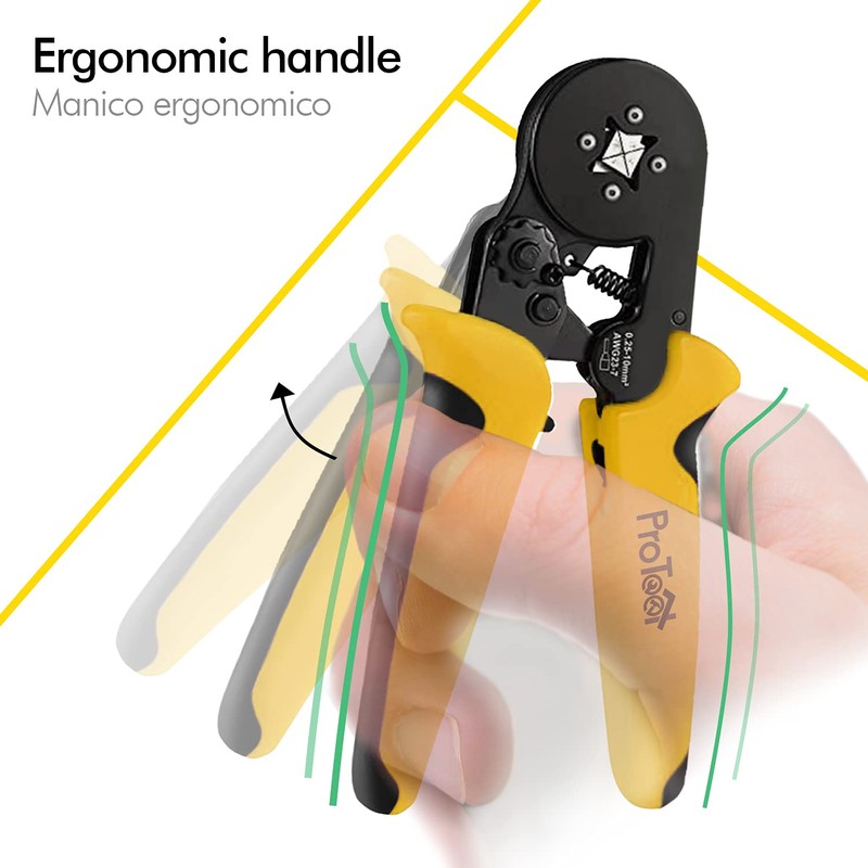 - β€ π£ππ₯ππππ§ ππ₯ππ π£β₯ Thanks to the reinforced metal curl section, you will get a stable and reinforced crown crimping. Piers can be used for isolated and non-isolated terminals. Its crimping range between 0.25 and 10 mmΒ² is wider than others. The crimping form is square by optimizing compatibility. You can have a rounded crimp by simply crimping the same terminal several times. The tool is very simple to use.