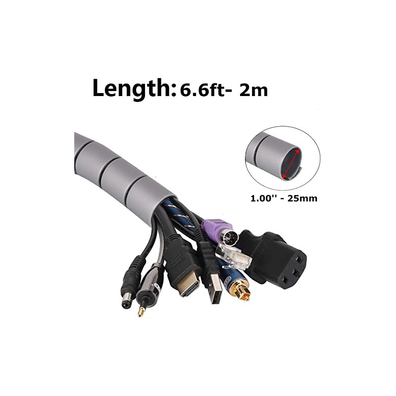 Cable Tidy Sleeves, 2M/25mm Cable Management Wire Tidy Cable Cover Protector for PC TV Computer, Home and Office Cord Organizer, DIY Flexible (Silver)