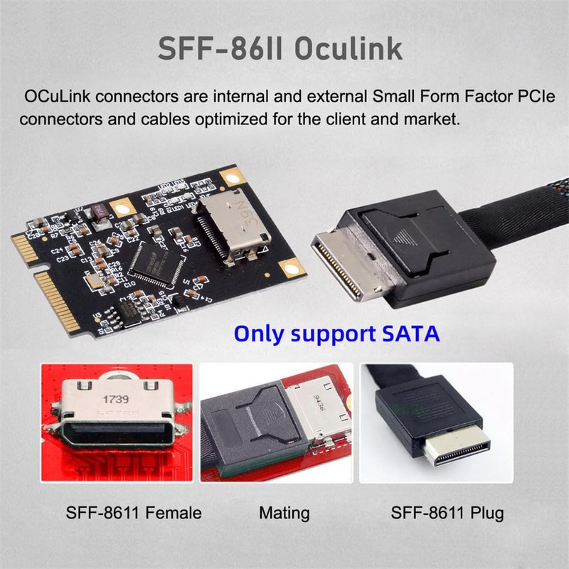 - Main control chip: ASMedia ASM1064.Interface: Oculink SFF-8612.Applicable slot: MINI PCI-E (mSATA is not supported)