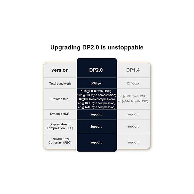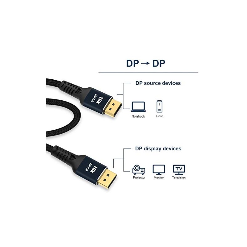 - High-speed bandwidth reaches 80Gbps, DisplayPort 8K Cooper cable, bandwidth reaches 80Gbps, high-speed transmission without signal loss. Support single,dual,triple displays mode.
