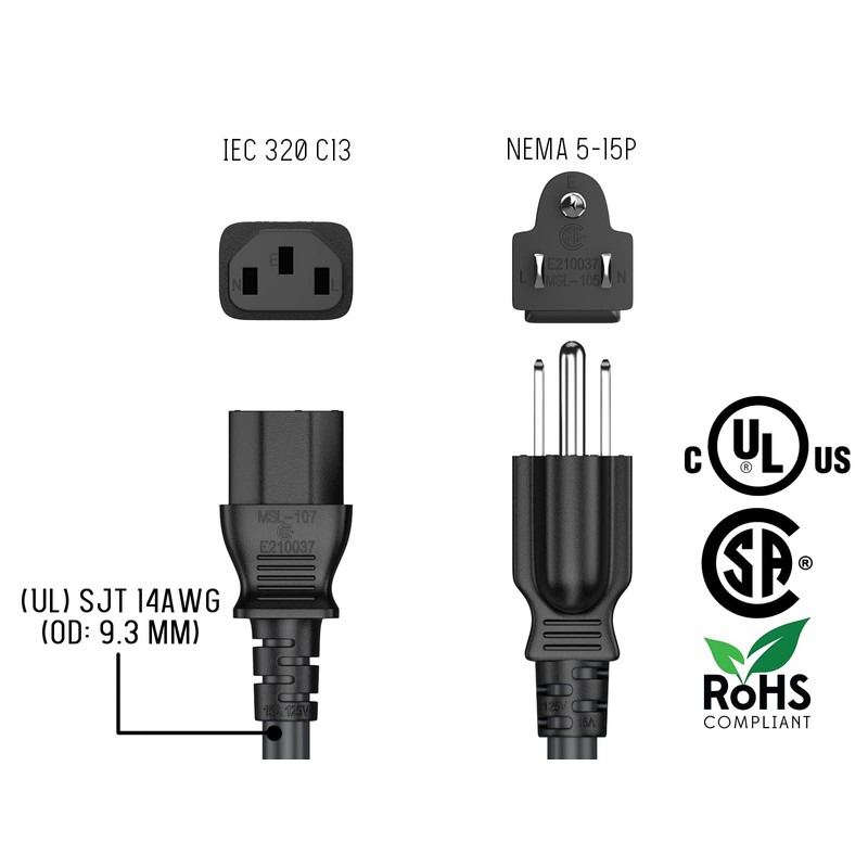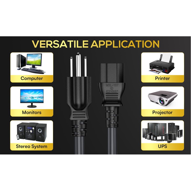 - UNIVERSAL COMPATIBILITY: Works with a wide range of devices featuring IEC-60320-C14 inlets, including computers, monitors, printers, TVs, and audio equipment