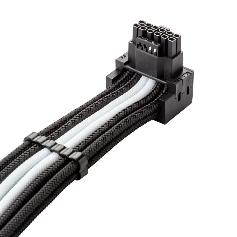 CableMod RT-Series Pro ModMesh Sleeved 12V-2x6 12VHPWR 90° StealthSense PCIe Cable for ASUS/Seasonic/Phanteks - Variant A (Black + White, 16-pin to Triple 8-pin, 60cm)