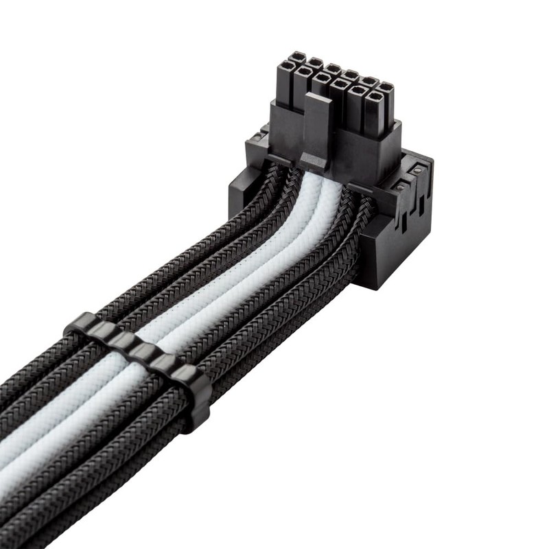 CableMod Universal Pro ModMesh Sleeved 12V-2x6 12VHPWR 90° StealthSense Direct PCIe Cable (Variant B, Black + White)