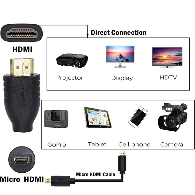 - Use: Converts the HDMI port on the TV, monitor or projector into a micro HDMI port into a laptop, camcorder or tablet. Used in HD camcorders, digital cameras, media centers, HDTVs, projectors, monitors, DVR, Blu-ray players, home theater systems