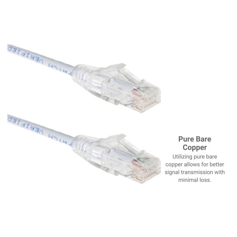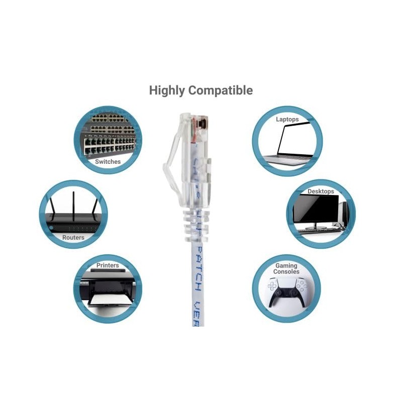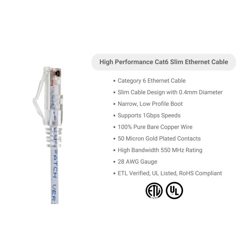 CablesAndKits 2ft White Cat6 Slim Ethernet Patch Cable, 550 Mhz, UTP, Snagless, Stranded Pure Copper