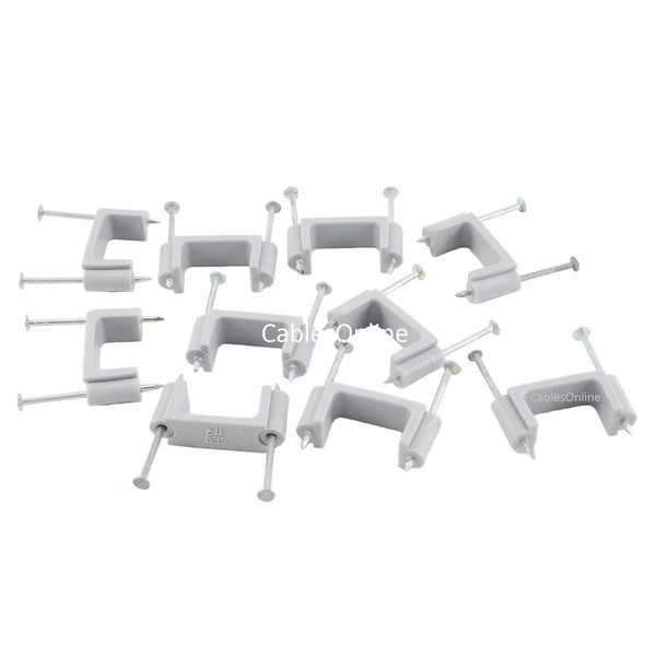 CablesOnline 10-PACK Flat Design 2-Nail Plastic Wall Mount Cable Clips (CM-401)