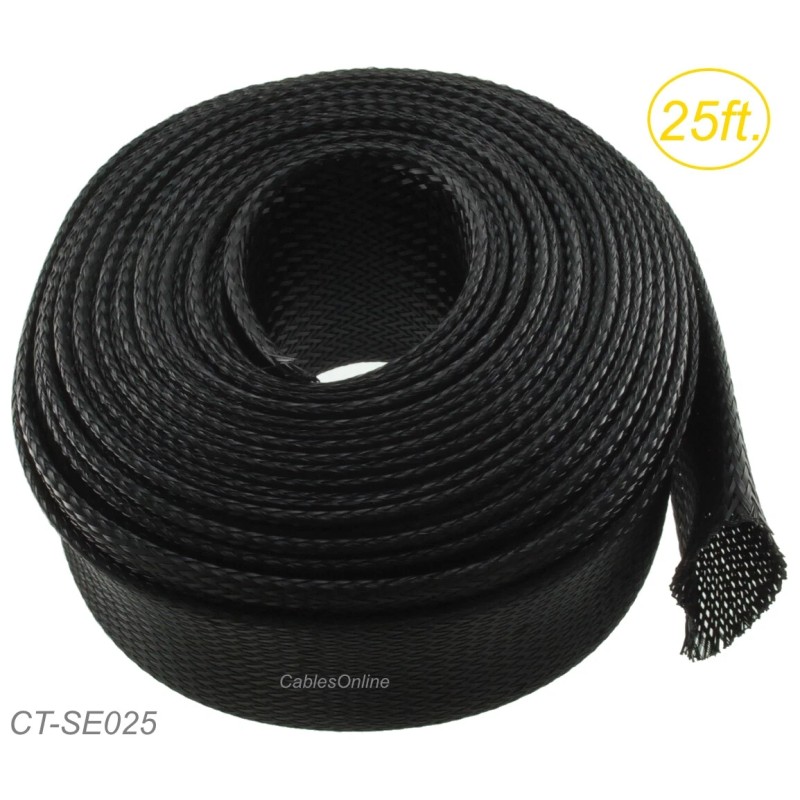 CablesOnline 25ft 2" (50.8mm) Diameter, 2" to 5" Expandable Braided Sleeving, CT-SE025