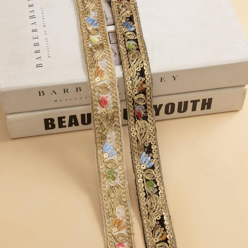 - 10 Yards Embroidery Polyester Ribbons: This gold jacquard metallic ribbon looks gorgeous, adding exquisite and delicate embroidery, incorporating strong elements of ethnic flavor, bright colors without losing harmony, suitable for a variety of wearing styles