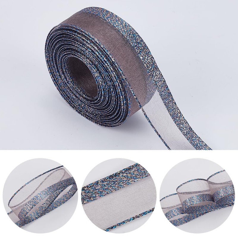 - Grey Sparkle Ribbon: Polyester ribbons has mesh and glitter edges design give the webbing surface a glossy finish, adding to the visual appeal and uniqueness effect